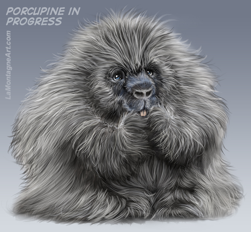 This one has a long way to go, but I’m enjoying discovering this little guy. I’m working from several reference photos, some I took at Discovery Wildlife Park and the Calgary Zoo, and I also bought a couple of stock photos, which I don’t normally do. Porcupines seem to vary a lot in body type and colouring, and I wanted a wider range to work from.
